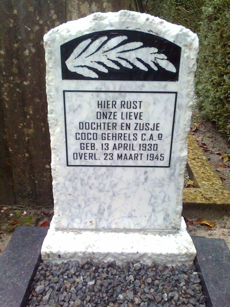 Zij is op dezelfde dag overleden als haar vader Cornelis Adolf Gehrels die in Kdo Mittelbau ‘Dora'(Nordhausen) om het leven komt door dwangarbeid.